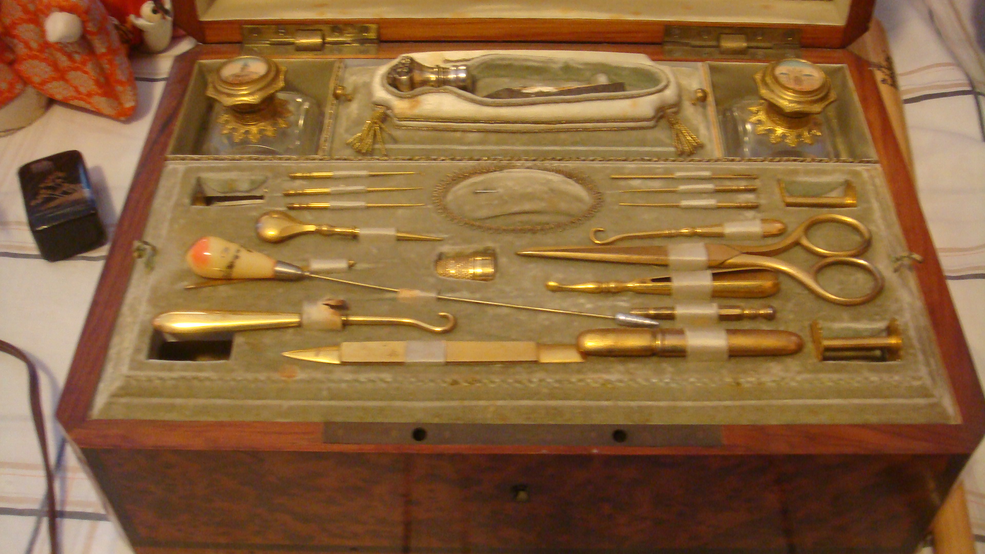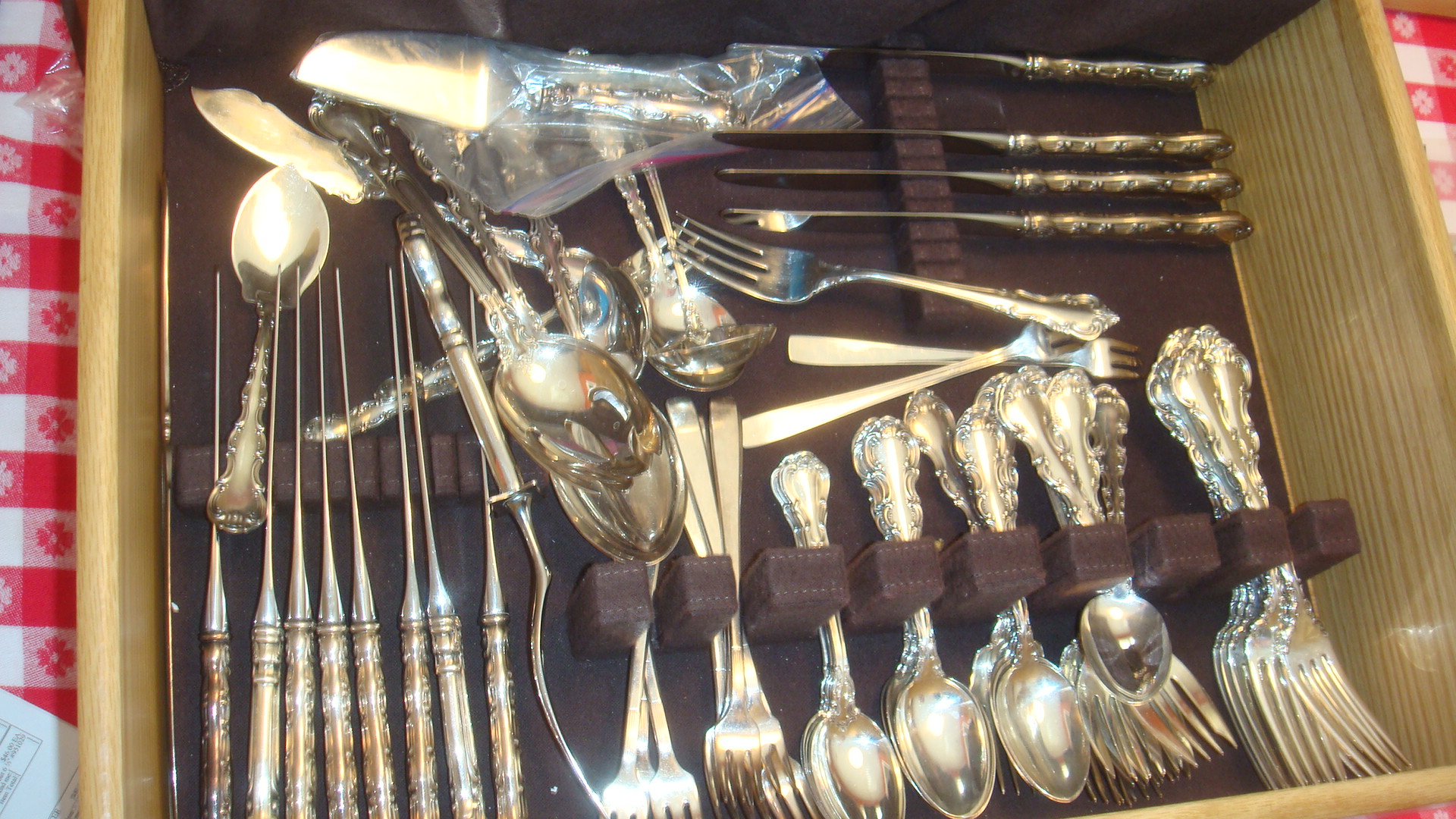 Partial Listing: Sterling Silver Flatware Service, Silver Hollow-ware, Thomasville Queen Anne Table & Chairs, Large Pyro Trunk, Elegant Civil War Era Vanity Chest, Hubbard Books, Gingerbread & Black Forest Clocks, Walnut Corner Cabinet, Blue Tile Washstand, Windsor Chair, Pair Roseville Vases, Foyer Demi-lune, Stamp Yearbook Collection, Early Cameras, Bakeware & Cookware, Tarkay Porcelain, 19th C Engravings, Bulldog Doorstop, Portable Lap desk, Tin Sculpture, Sewing Supplies, Folk-art Boat with Sailor, Early Rudder, 2 Pitcher & Bowl Sets, Victorian Beveled Mirror, Large Collection of Fine & Costume Jewelry, Outdoor Patio Furniture, Sewing Machine, Assorted Tools, Many Christmas Decorations, Sterling Top Dresser Jars, Pottery Jug & Jardinière, Hand Loomed Room and Area Rugs, Sofa, Chairs, Side Tables, Art Glass, 4 Panel Asian Screen, Pond Boat Model, Silver Napkin Ring Collection, Signed Mene Greyhound Bronze, Collectible Figurines, Marble Top Parlor Table, Collection of Eye Glasses, Original Spool Cabinet Desk, Porcelain & Composition Dolls, Hand Made Quilts, Slag Glass Lamp, Flat Screen TV, Hall Table & Mirror, Tin Wind Ups & Miniatures, Postcard Collection, DVDs, Many Books, Check Auctionzip.com #7299 for Complete Listing & Pictures.